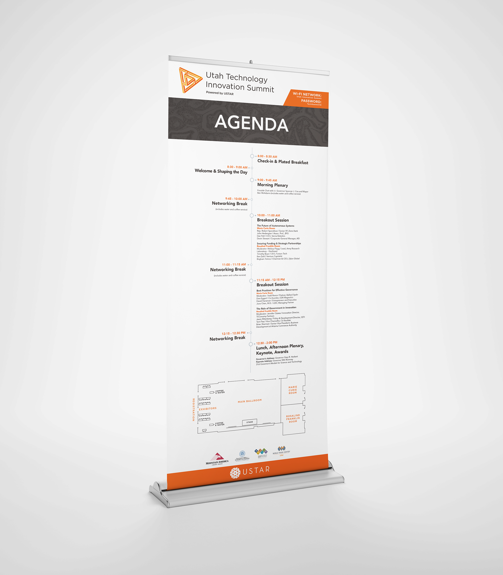 Design for signs and name badges at the 2018 & 2019 Utah Technology Innovation Summits.